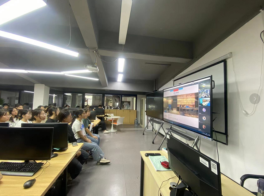为了应对当下严峻的疫情形势,今年的招聘会采取线上会议形式。会议于2022年10月27日上午10点在装配式装修协同创新中心召开。会上,2020级装饰专业全体员工集体视频连线唐彩装饰公司。首先唐彩装饰公司人事徐经理从关于我们、企业文化、企业员工培养模式、企业目前的发展状况及发展前景与同学们作了详尽的分享。接下来是公司研发部的梁经理给同学们分享公司的装配式、BIM新技术运用的项目案例。最后的互动环节,同学们就自己所关心的专业对口、企业所需求的人才素质、公司发展平台与机会等问题与公司进行了互动交流。公司认真作答,并多次强调“选择”对于老员工的重要性,希望同学们都能找到自我实现的价值与目标。招聘会场面热烈,掌声不断。