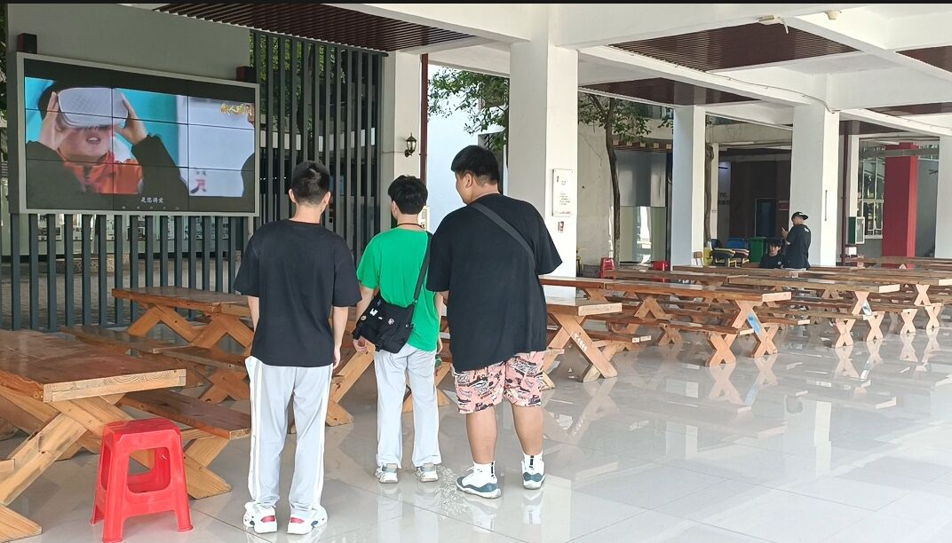 图为:公司LED屏循环播放网络师生教育视频(李洁梅、苏伟豪/摄