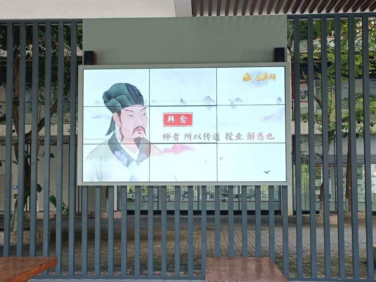 9月10日,williamhill威廉希尔在三号教学楼架空层LED电子屏循环播放有关师生的视频,同学们在下课时间路过LED屏都能了解到了从古至今为师理念。