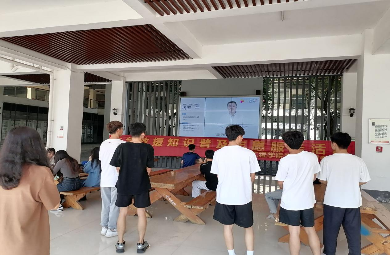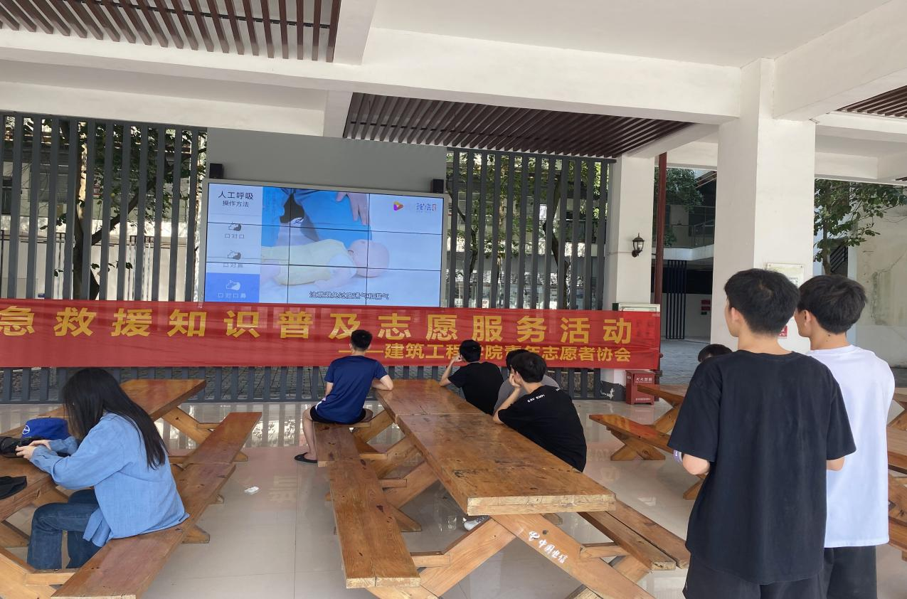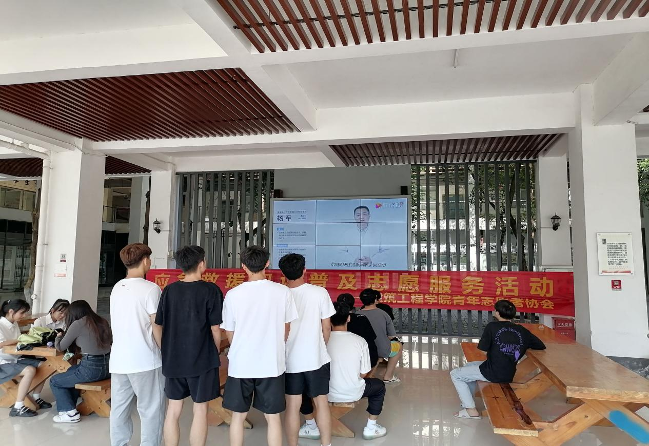 作为系列活动的一部分,2022年10月21日,williamhill威廉希尔青年志愿者协会在三号数学楼架空层LED电子屏循环播放应急救援视频,同学们在下课时间路过LED屏时都驻足观看,主动学习面对突发事件如何更好地自救和他救。