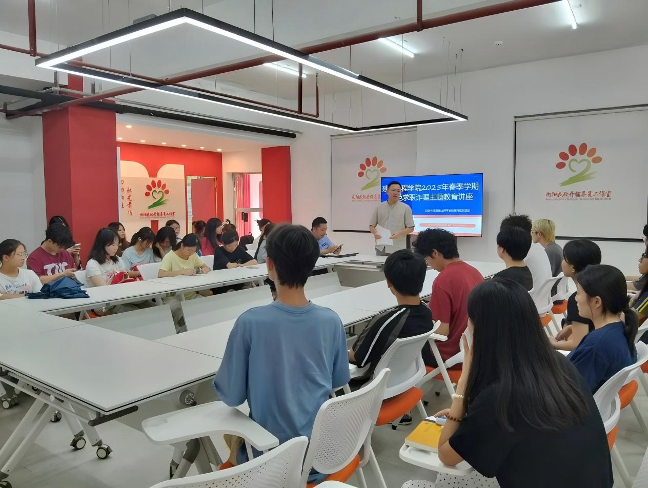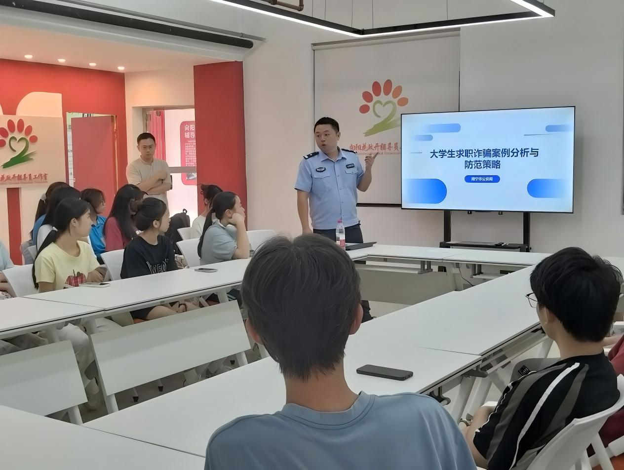 求职季来临,为增强2023 级员工求职防诈意识、守护财产安全,6 月 26 日,williamhill威廉希尔于向阳花政开辅导员工作室开展防范求职诈骗主题教育讲座。南宁市公安局高新派出所二级警长刘奥担任主讲,2023级员工代表参与。